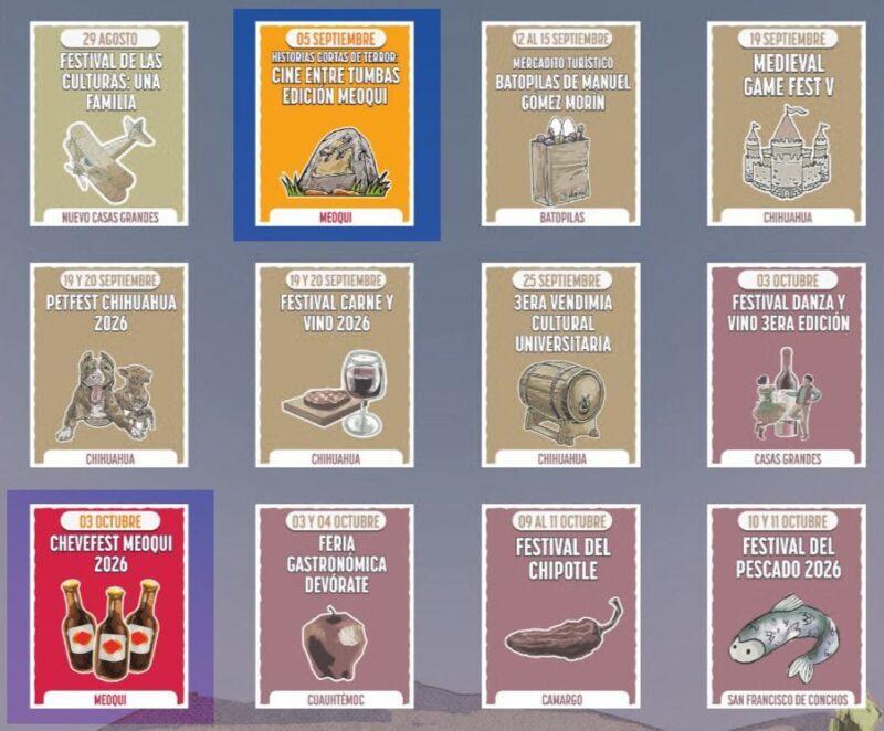 El municipio de Meoqui forma parte del calendario estatal “Chihuahua es Para Ti, Conócelo” 2026, con la realización de dos importantes eventos que fortalecerán el turismo y la actividad económica en la región: el CheveFest, el próximo 3 de octubre, y “Historias Cortas de Terror: Cine entre Tumbas”, edición Meoqui, programado para el 5 de septiembre.