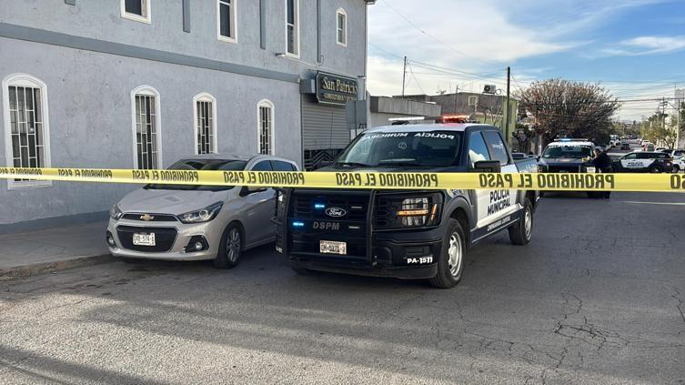 CHIHUAHUA, CHIH.- Al abrir hoy el edificio hallaron tres impactos y tres casquillos de 9 mm en consultorios San Patricio, a espaldas del Hospital Central; policía municipal y Fiscalía acordonaron la escena.
