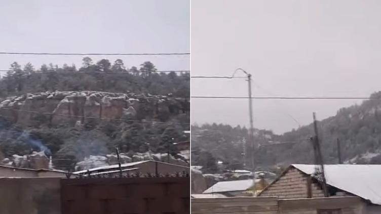 Este martes, a temprana hora, se reportó la caída de una nieve ligera en San Juanito, municipio de Bocoyna, Chihuahua.