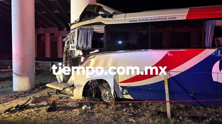 Autoridades informaron que el accidente registrado durante la madrugada en el Libramiento Oriente de Chihuahua, donde un camión de la empresa Rhino se impactó contra una estructura, habría sido provocado porque el conductor se quedó dormido al volante.