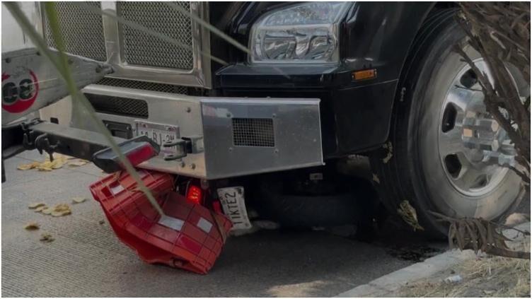 De acuerdo con policías municipales, el accidente se dio debido a los puntos ciegos de la pesada unidad, lo que presuntamente impidió que el conductor del tráiler advirtiera la presencia del repartidor, quien circulaba por la zona.