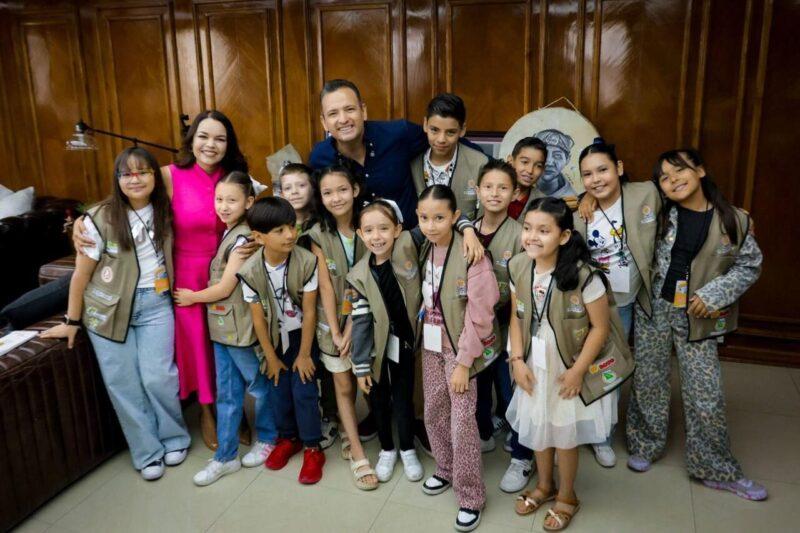Marco Bonilla convivió con las y los reporteritos de El Heraldo, niñas y niños que visitaron las instalaciones de la Presidencia Municipal para conocer el recinto, hacer preguntas y descubrir las actividades que se realizan en favor del municipio.